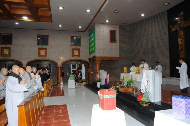 교구장 돈관큰스님, 7국장스님, 경산지역 스님과 은해사 신도회 임원 20여명은 24일 경산성당을 방문하여 성탄절 전야 미사에 참석하여 아기 예수 탄생을 축하하였다.