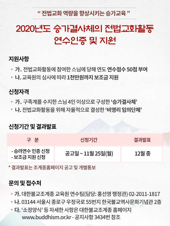 2020년도 승가결사체의 전법교화활동 연수인증 및 지원